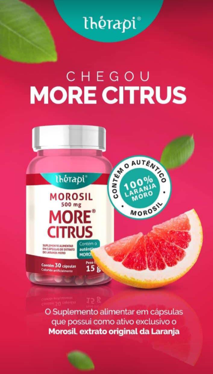 O More Citrus é um suplemento alimentar em cápsulas que tem como principal ativo o Morosil®. O Morosil® é o extrato natural obtido da original laranja moro, conhecido por seus benefícios antioxidantes e apoio ao metabolismo saudável.